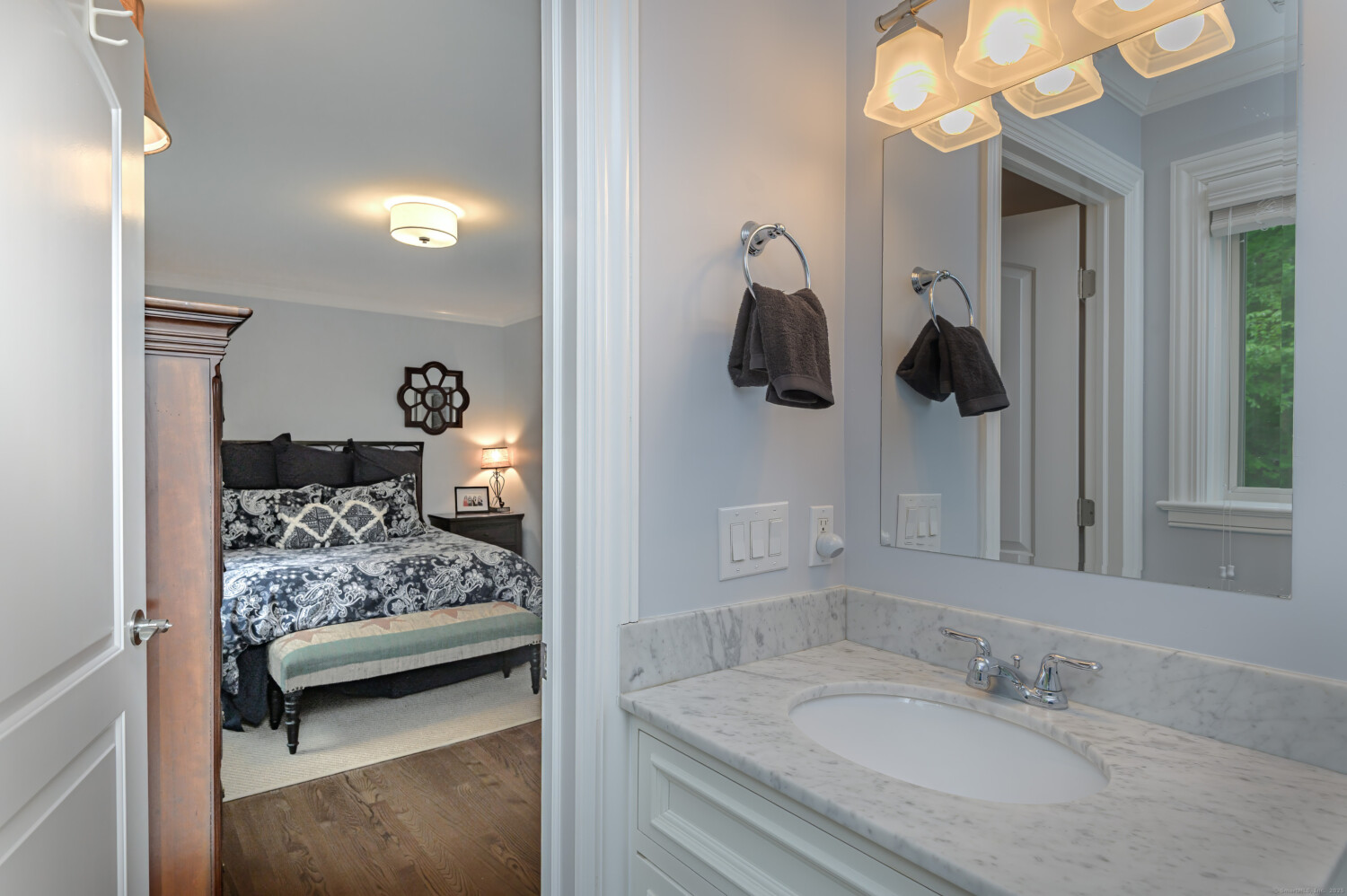Welcome to this Cottage Style Gem, extensively renovated top to bottom in 2011 to include a myriad of custom details and quality workmanship. Just minutes to desirable downtown Ridgefield, this 4,049 sqft home sits on a beautifully landscaped 1.09-acre lot, with pool offering the perfect blend of natural beauty, convenience and modern comfort. This super functional floor plan features 4 Ensuite Bedrooms, and 2 half baths. The beautifully appointed, on-trend KIT complete w/custom cabinetry, stainless steel appliances, breakfast bar, seamless flow into the Dining and Living Rooms-ideal for everyday living & entertaining. Nearby is the inviting Family Room w/fireplace and convenient laundry area. The second floor features 3 Bedrooms all with ensuite Baths. Just a few stairs away is the private, luxurious Primary Suite, complete with two walk-in closets and a spa-inspired bath. The versatile finished Lower Level includes a full wet bar, perfect for movie nights, entertaining, or relaxing with the beverage of your choice. Enjoy outdoor living at its finest with a stone patio, in-ground pool, and manicured grounds. Additional features include a full-house generator, new pool equipment, public water, and a host of newly installed appliances and renovations throughout. This move-in ready home offers both timeless style and modern upgrades in one of Ridgefield’s most sought-after locations.